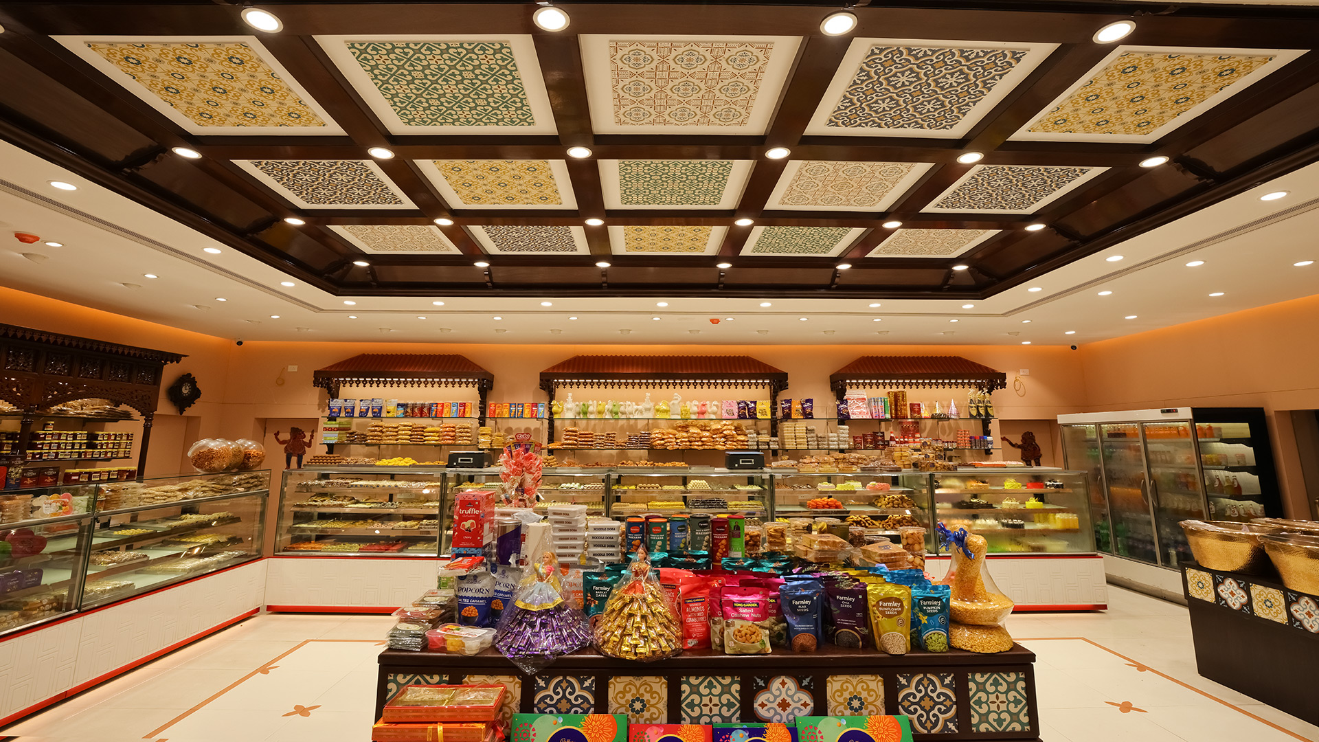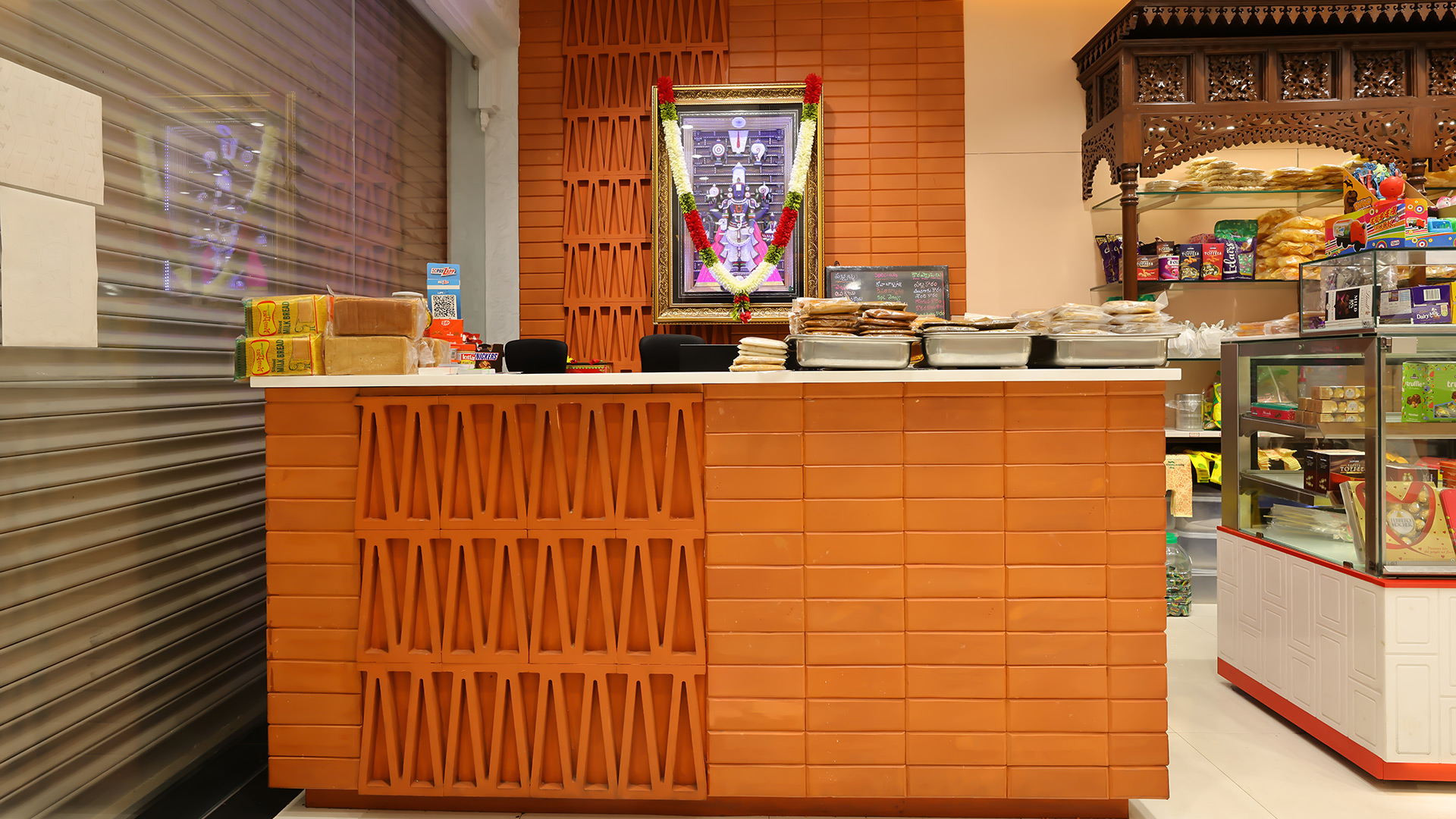Inspired by Chettinad’s grand mansions, our interiors blend intricate teak racks, inlaid designer ceramic tiles, and a vibrant yet muted palette of ochres, blues, and greens, creating a culturally immersive experience. Every detail—from earthy textures underfoot to inviting display corners—is designed to delight the senses, encouraging visitors to linger and connect with both heritage and flavor.