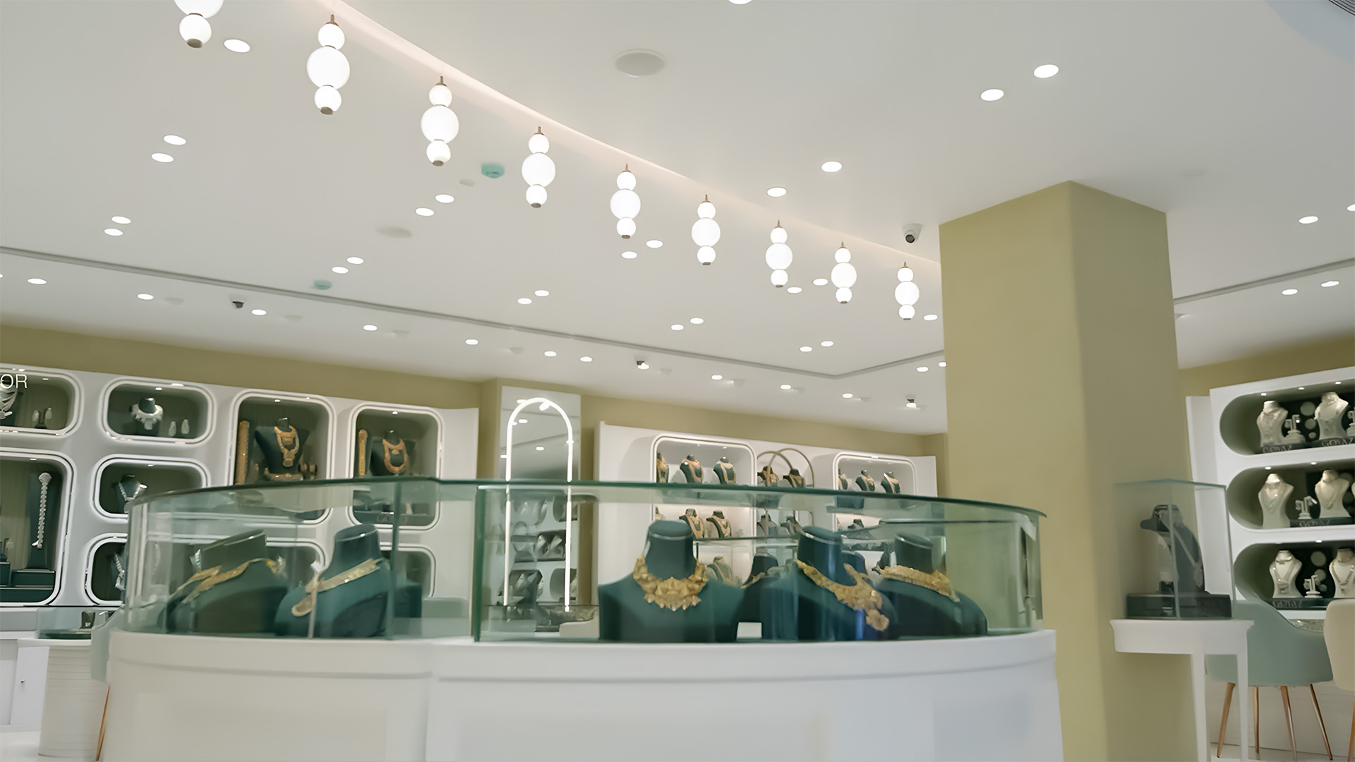 Goyaz is more than a jewellery destination—it’s an architectural signature. The parabola-inspired facade, framed in rhythmic golden light, establishes a bold visual identity that lingers in the minds of passersby.