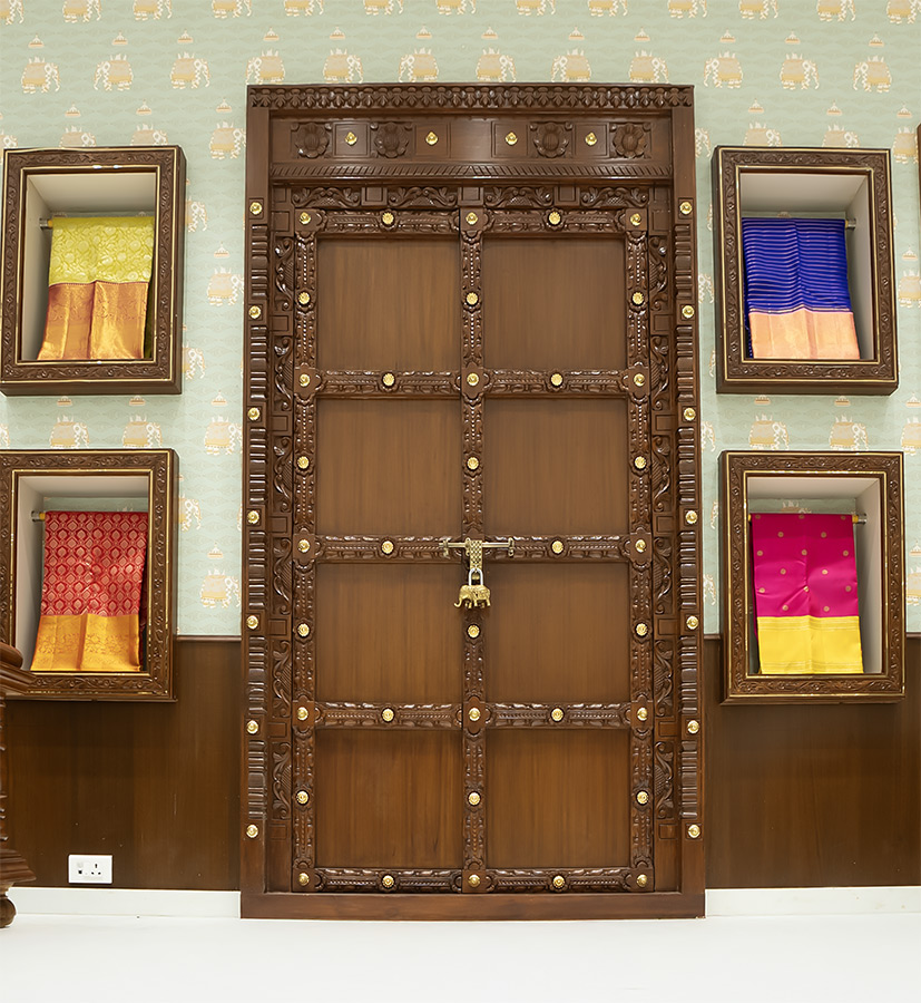 The 450 sq. ft. in-store Tanjore mural, illustrating the celestial journey and marriage of Lord Perumal, is India's largest retail mural.